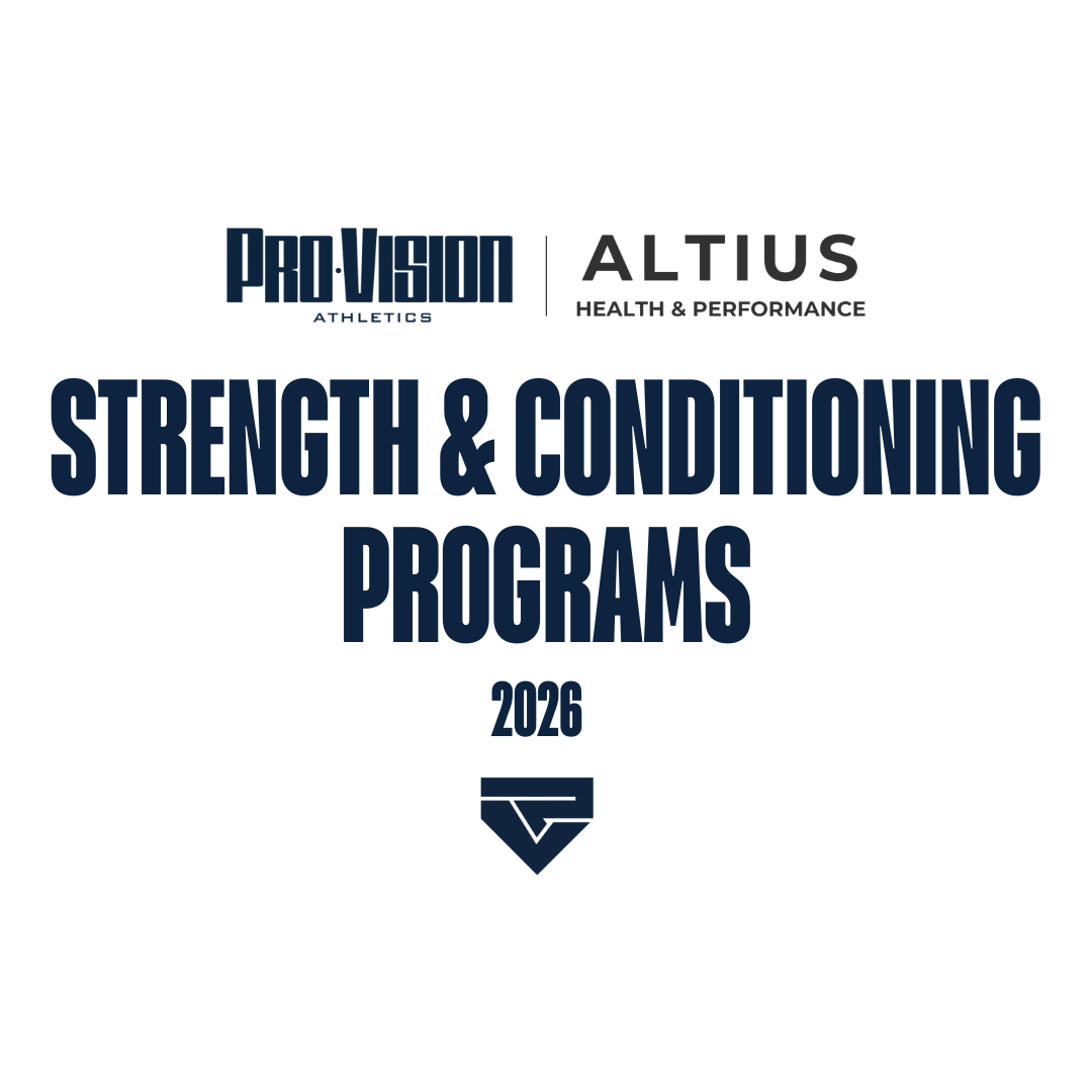 Shop / Payment Categories: Select a Category Merchandise Hoodies T-Shirts Jackets Caps Accessories Programs Strength & Conditioning Winter Break Clinics Winter Programs Travel Ball Palm Springs, 2026 Arizona, 2026 Merchandise Programs Travel Ball ProVision Mascot T-shirt $30.00 ProVision Logo T-Shirt $30.00 ProVision Palm Springs T-Shirt $30.00 ProVision Fitted On-Field Cap $55.00 ProVision Varsity Bomber Jacket $110.00 ProVision Short Sleeve Cage Jacket $50.00 ProVision Palm Springs Hoodie $50.00 ProVision Performance Hoodie $50.00 ProVision Baseball Socks $20.00 Strength & Conditioning Baseball Program (x1/Week) $280.00 Strength & Conditioning Baseball Program (x2/Week) $560.00 Skills Development Winter Baseball Program $480.00 Hitters Development Winter Baseball Program $450.00 Pitching Development Winter Baseball Program $450.00 Catchers Development Winter Baseball Program $450.00 Defensive Skills Winter Baseball Program $450.00 Winter Break Skills Development Clinics $240.00 Down Deposit - Palm Springs $475.00 Second Payment - Palm Springs $475.00 Drop-In Defence Training $30.00